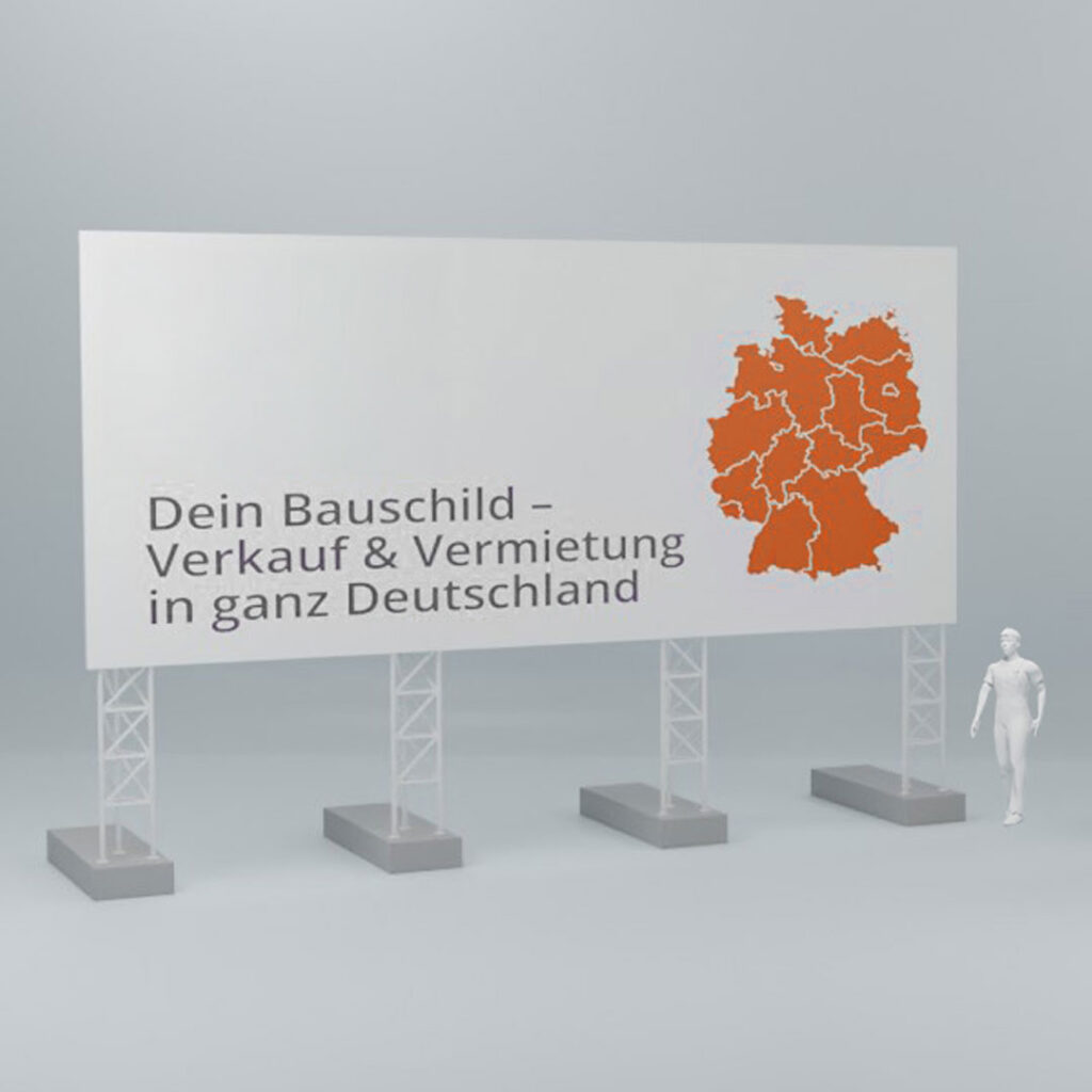 Wer wartet schon gerne auf das Bauschild? Genau aus diesem Grund, machen wir es einfach. Ein Bauschild bekommst du bei uns nach deinen Wünschen konzipiert, schnell geliefert und mit maximaler Sicherheit aufgestellt. Und du kannst das Bauschild mieten oder kaufen – deutschlandweit. Damit dein Bauvorhaben bestmöglich wirkt, achten wir bei unseren Bauschild-Anlagen immer auf eine ästhetische und massive Optik. Und bieten dir on Top die flexible Möglichkeit zum Kauf oder zur Anmietung deiner Bauschild Anlage.