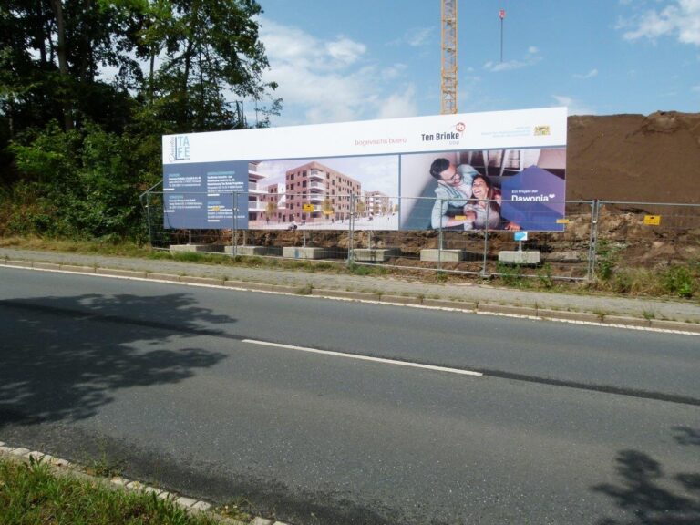 Baugerüste und Bauzäune eigenen sich ideal als freie Flächen zur Außenwerbung. Nicht immer muss es gleich ein großflächiges Werbebanner sein, mit dem Du auf dein Unternehmen bzw. den Bauprojekt aufmerksam machen musst. Ein Bauschild in Form eines Banners, das Du direkt am Bauzaun anbringen kannst, ist in vielen Fällen eine leichte, stabile und witterungsfeste Lösung für einen effektiven Auftritt direkt in Publikumsnähe.